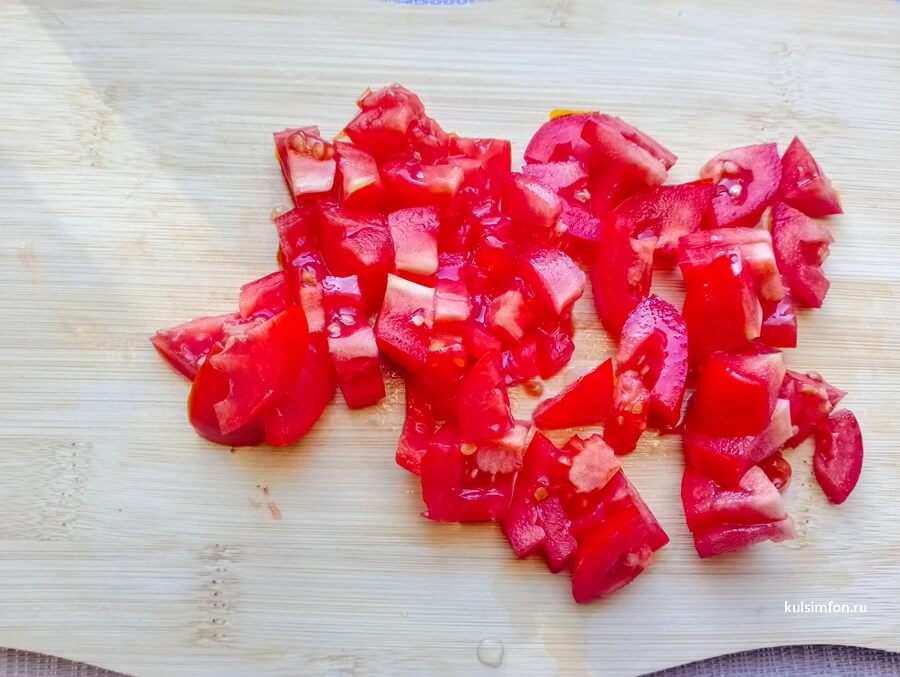 - Помидоры нарежьте кубиками.