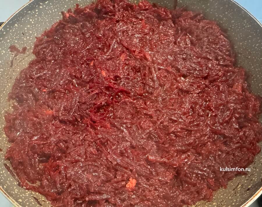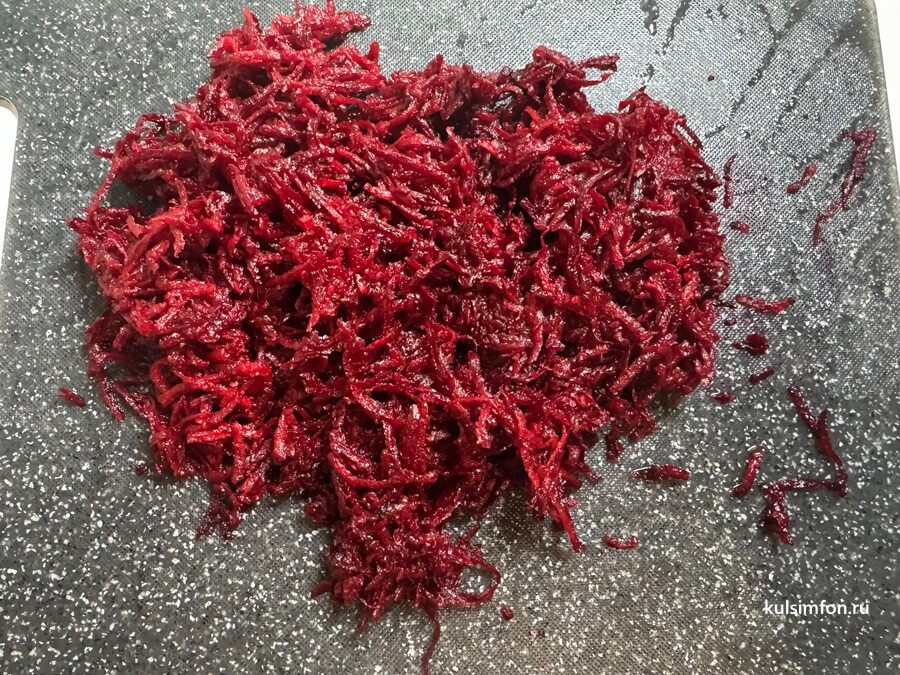 - Свеклу натрите на крупной терке.