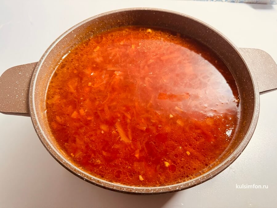 - Чтобы борщ получился насыщенного красного цвета, свеклу обязательно тушат с кислотой.