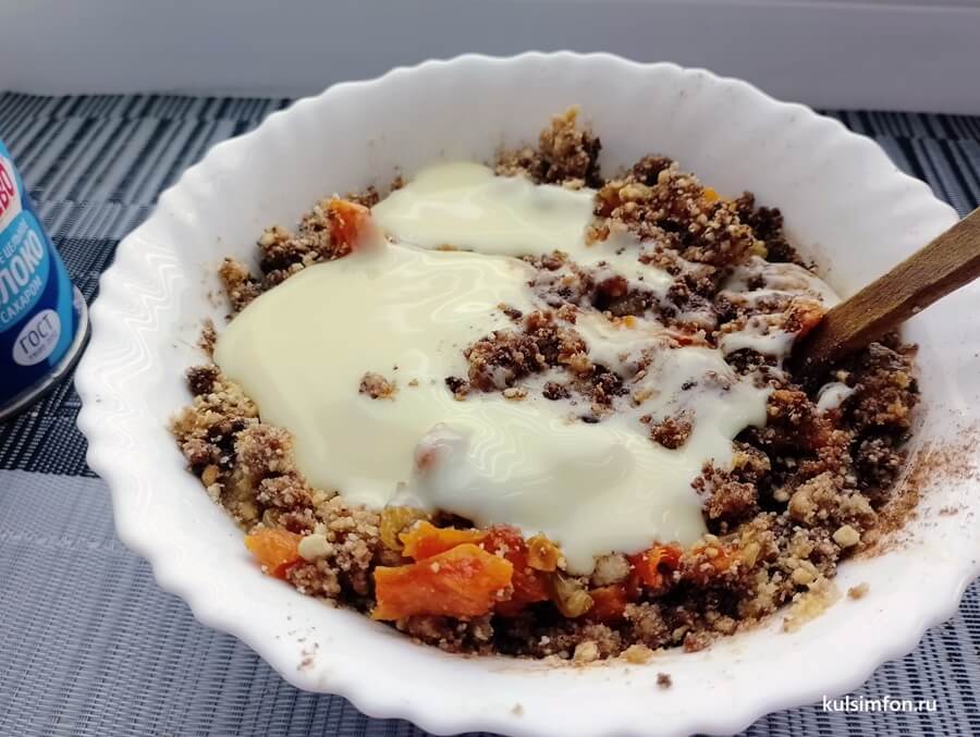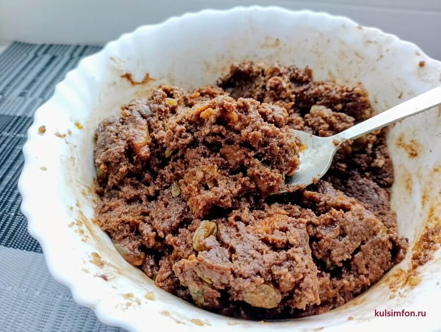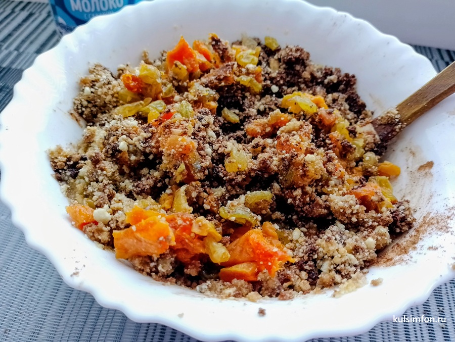 - Добавить подготовленные сухофрукты и еще раз хорошо перемешать.