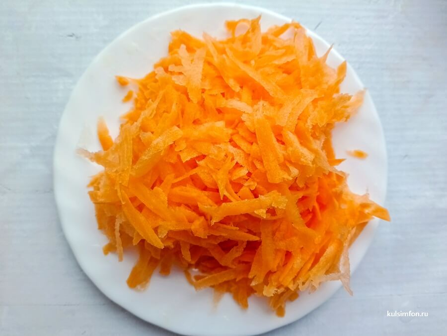 - Добавляем морковь к луку. Пассеруем, постоянно помешивая.