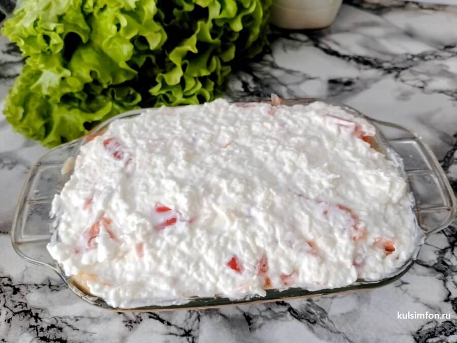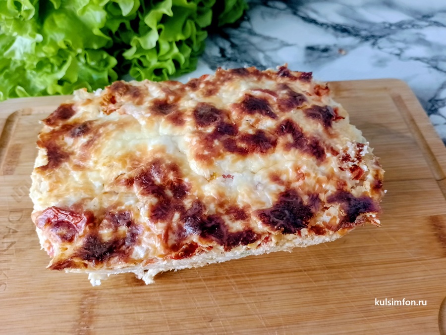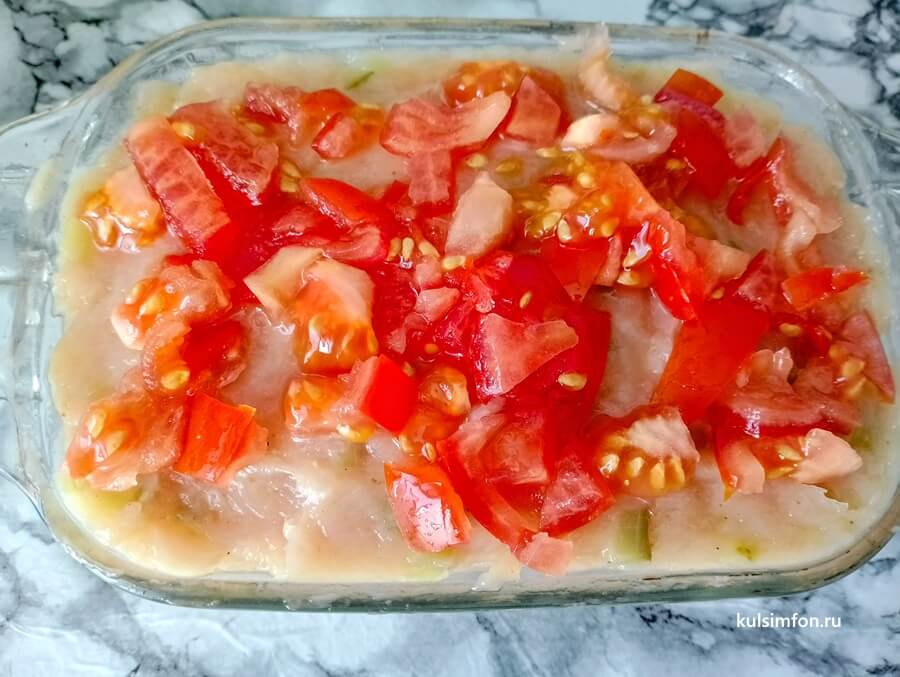- Сверху равномерно распределить нарезанный помидор.