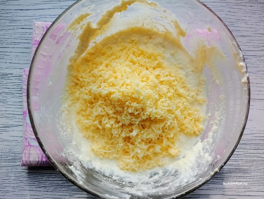 - Вмешать тертый сыр, чтобы он равномерно распределился по всей массе.