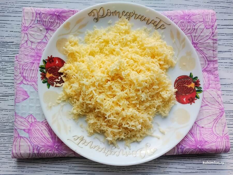 - Сыр натереть на мелкой терке. Если используется сулугуни, его также лучше натереть или мелко нарезать.
