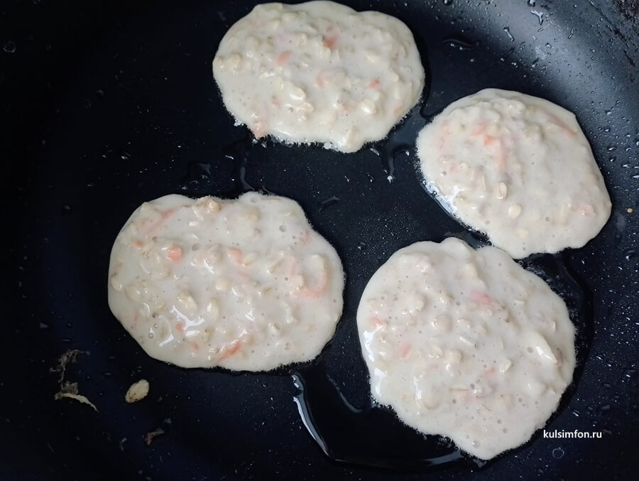 Жарьте оладьи на умеренном огне под крышкой, чтобы они хорошо пропеклись внутри и не подгорели снаружи.