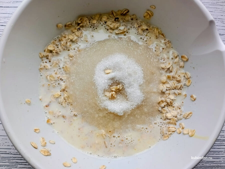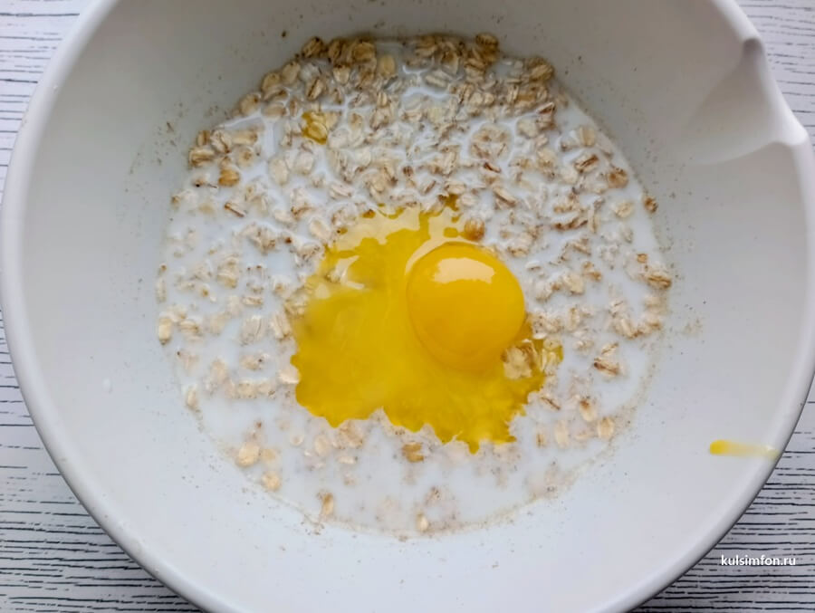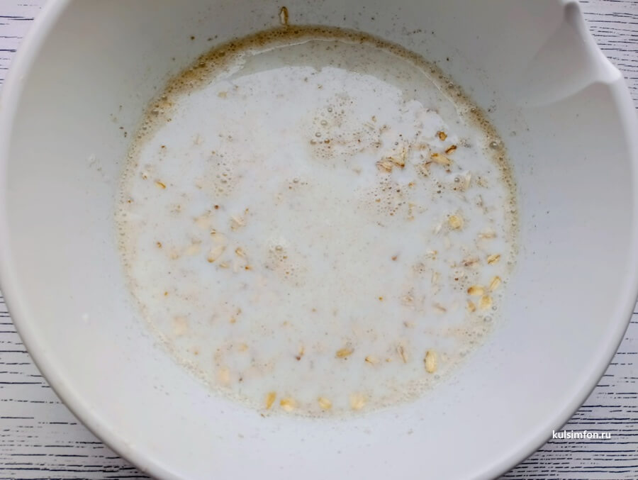 - Переложить овсяные хлопья в глубокую миску, залить теплым молоком и оставить на несколько минут, чтобы они набухли.