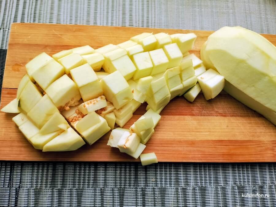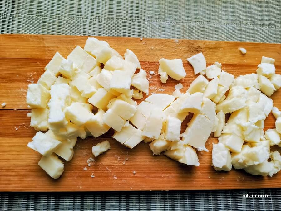 - Нарезать адыгейский сыр кубиками 1×1 см.