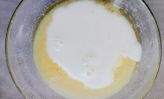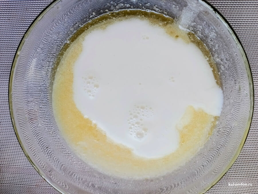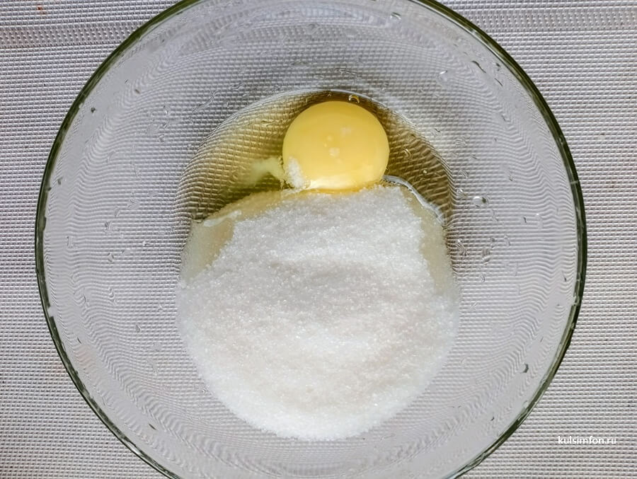 - В миске соединить сахар и яйцо, перетереть до однородности.
