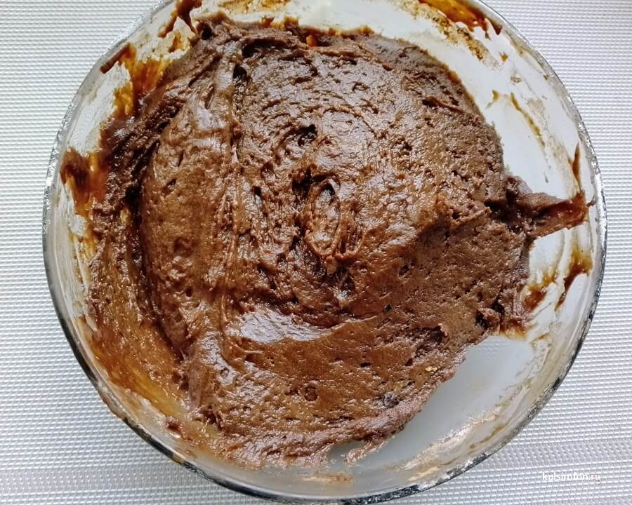 - Замесить густое липкое тесто — удобно использовать лопатку или ложку.