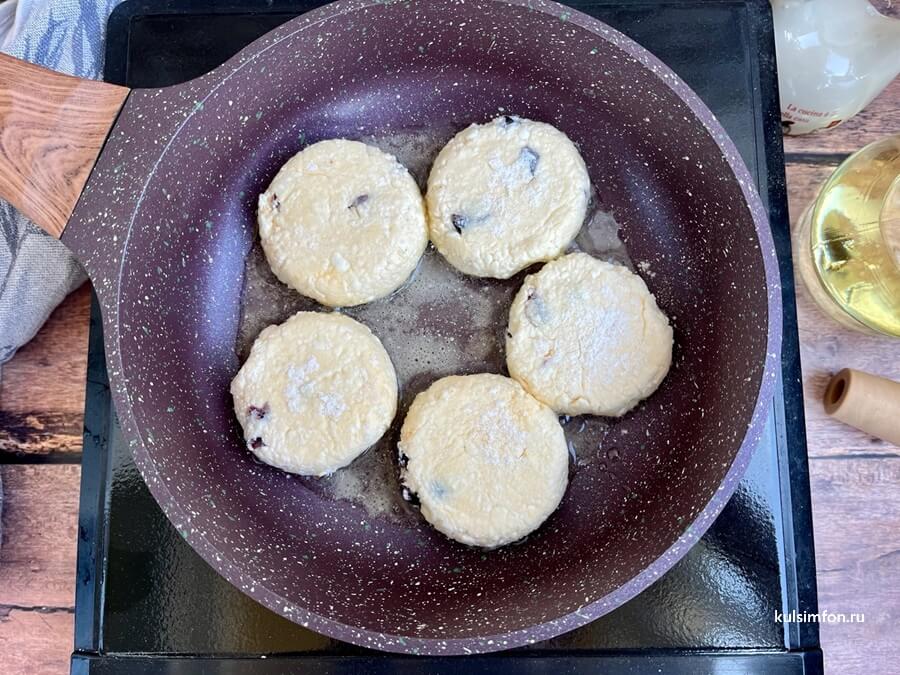 - Разогрейте сковороду с небольшим количеством растительного масла. Обжаривайте сырники на среднем огне до золотистой корочки с обеих сторон.