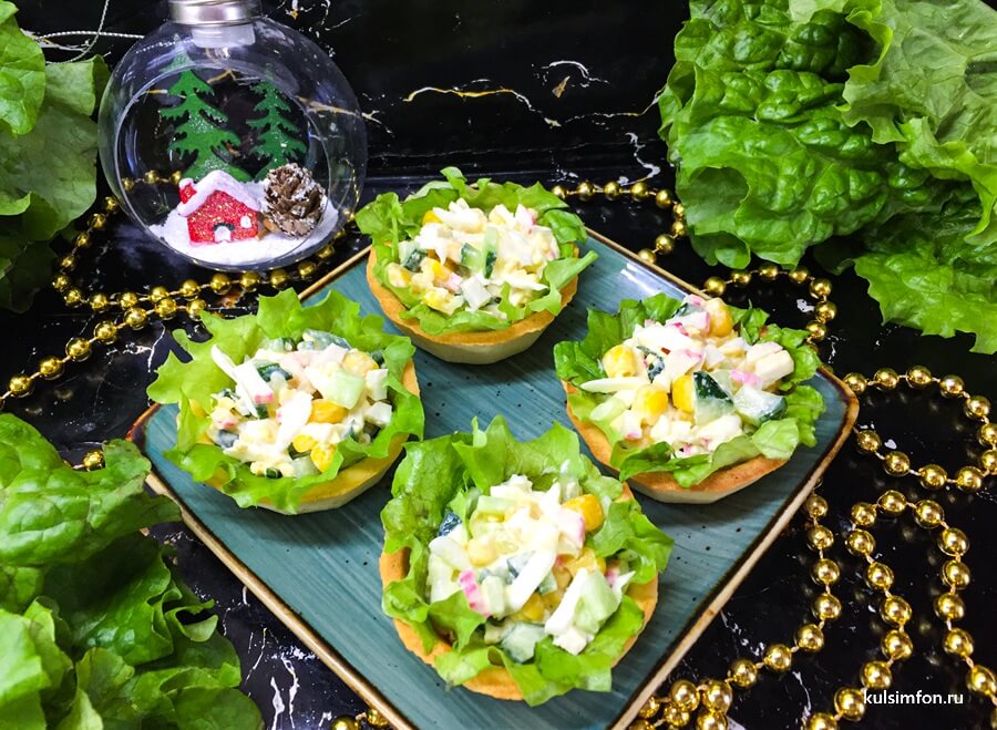 Тарталетки с кукурузой и крабовыми палочками: рецепт по шагам