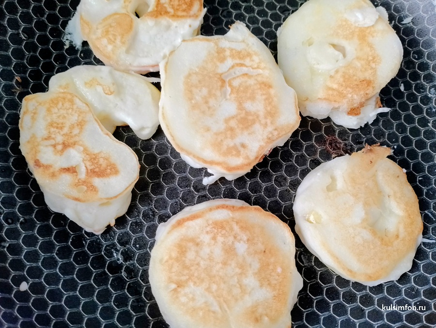 - Обжарить с двух сторон до золотистого цвета на среднем огне, чтобы не подгорели.