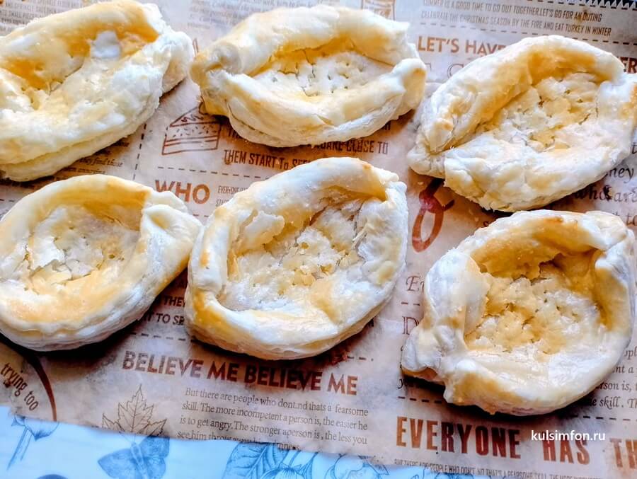- Готовые лодочки остудите и слегка прижмите середину вилкой.