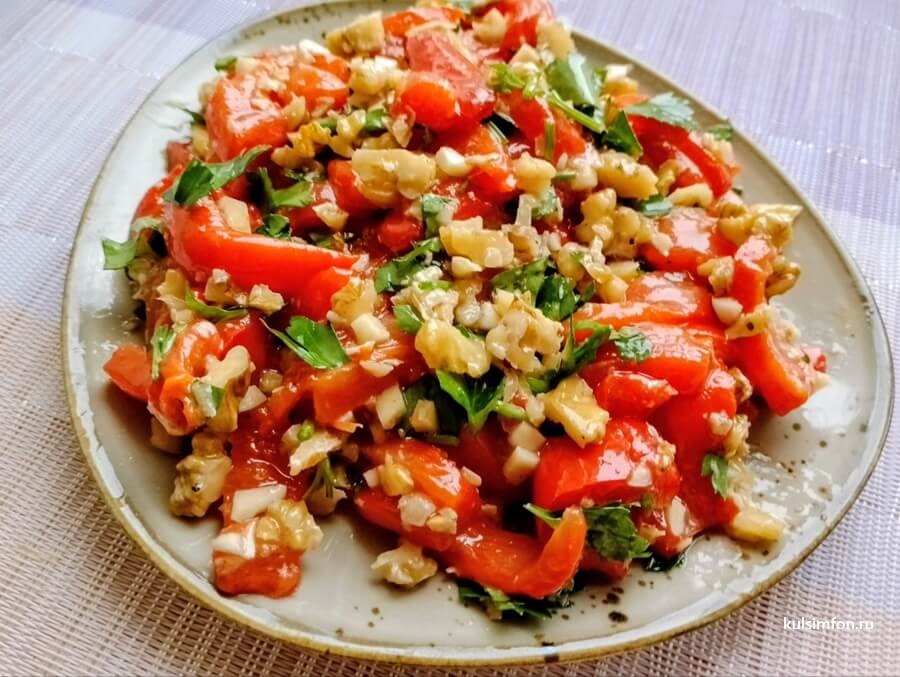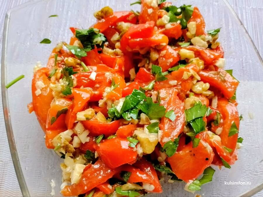 Закуска из запеченного болгарского перца с грецким орехом — это ароматное и пикантное блюдо, которое прекрасно дополняет мясо, рыбу и блюда на гриле. Сладкий вкус запеченного перца в сочетании с чесноком, орехами и лимонным соком создает насыщенный, свежий и немного острый вкус. Такая закуска из запеченного болгарского перца украсит любой стол и понравится всем любителям овощных блюд.