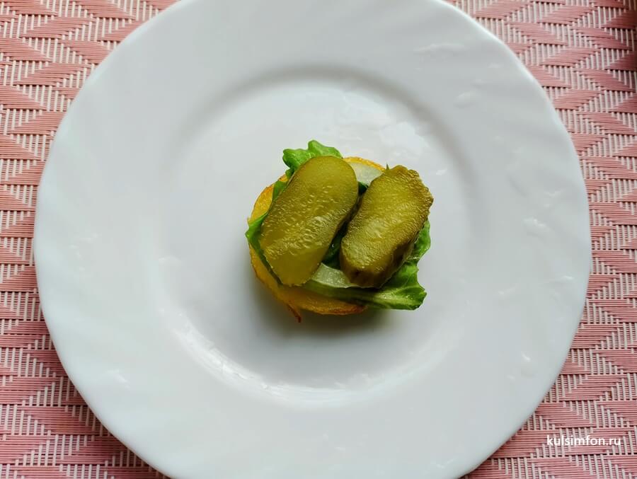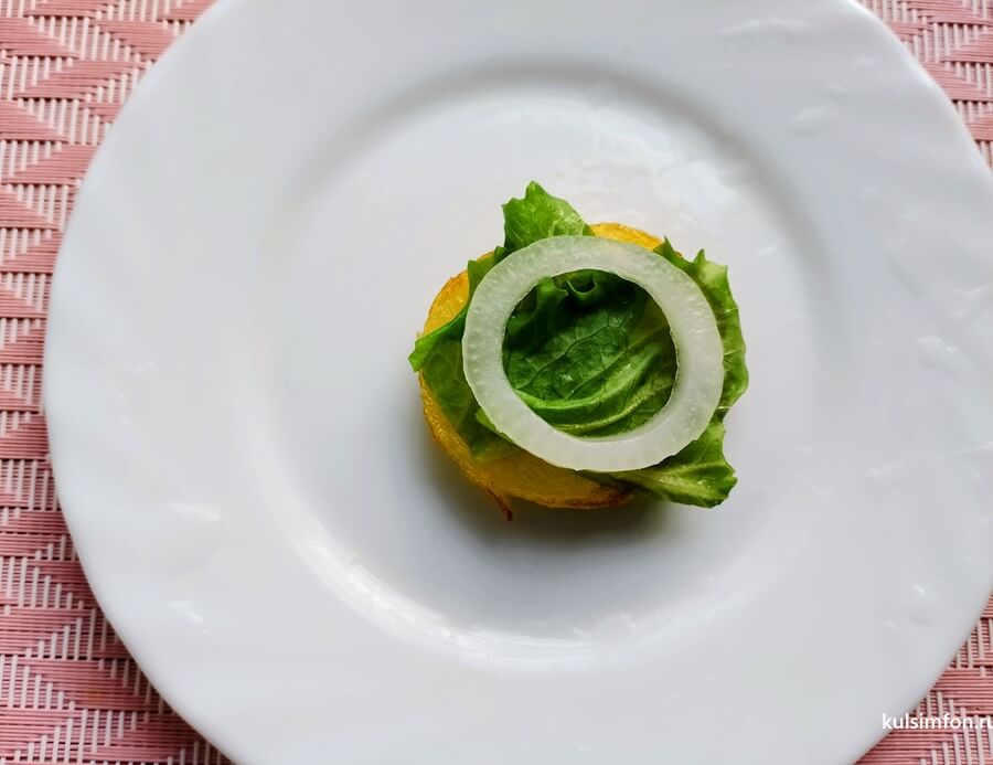 - Сверху добавить кольцо маринованного лука.